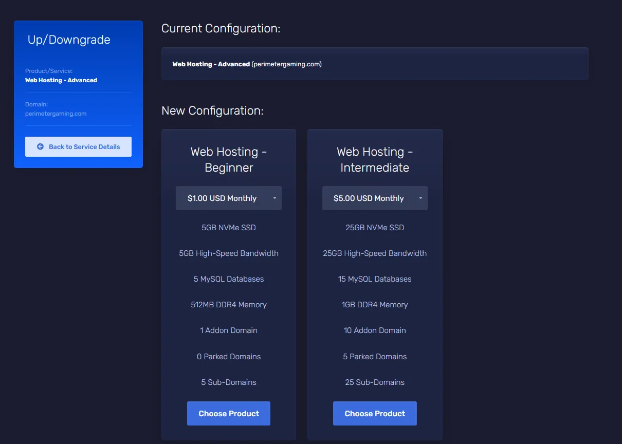 7. Once you’ve placed the order, your service will be upgraded/downgraded as soon as the payment is verified. If you are currently using more resources then what your plan allows, you will be required to upgrade before your service will become available.